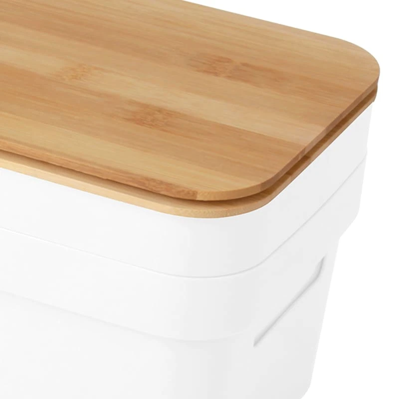 2-Pack White 3.5L Storage Bin With Bamboo Lid, Small