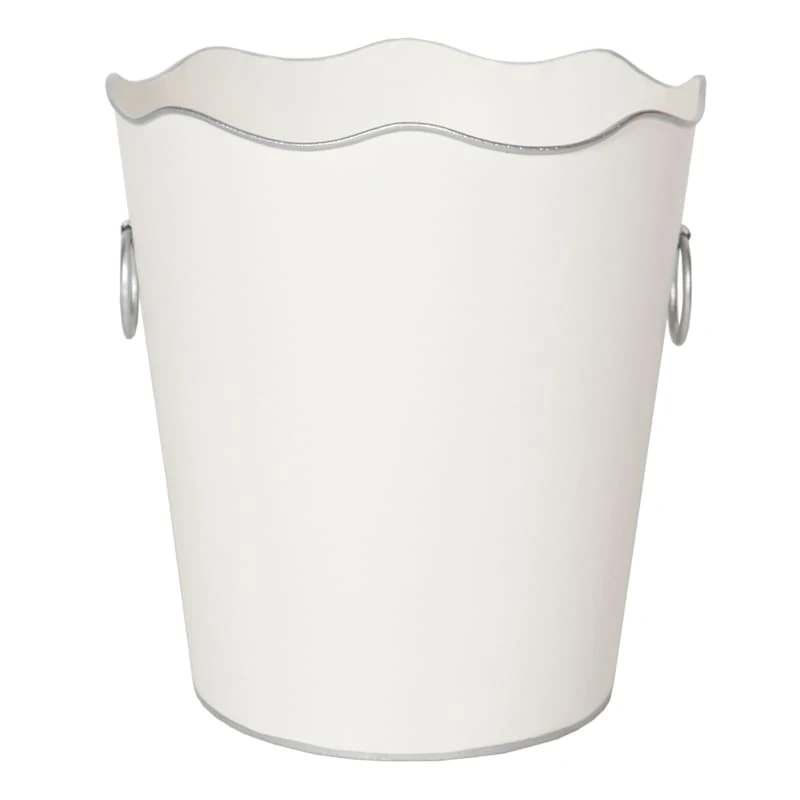 Grace Mitchell White With Silver Edges Trash Bin, 10.2"