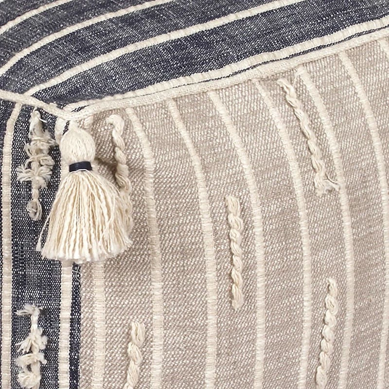 Modern farmhouse meets At Home prices in Honeybloom, our exclusive new brand that celebrates life lived together. Featuring a global-inspired design, our Nora tasseled square pouf is brimming with loads of exotic charm. A pouf is the perfect addition to any home; it’s convenient, versatile and handy — use as a footrest, as extra seating or as a side table. This piece will add eclectic charm to any room it lands in. The black and cream upholstery boasts an allover printed stripe motif. It’s the easy way to add natural charm to your decor.